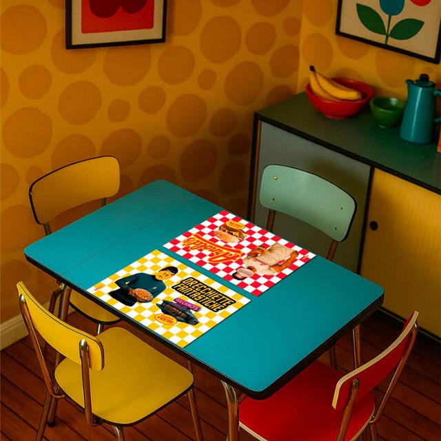 Tovagliette irriverenti che demoliscono il mito del western all’italiana e lo impastano con la cultura pop del cibo.